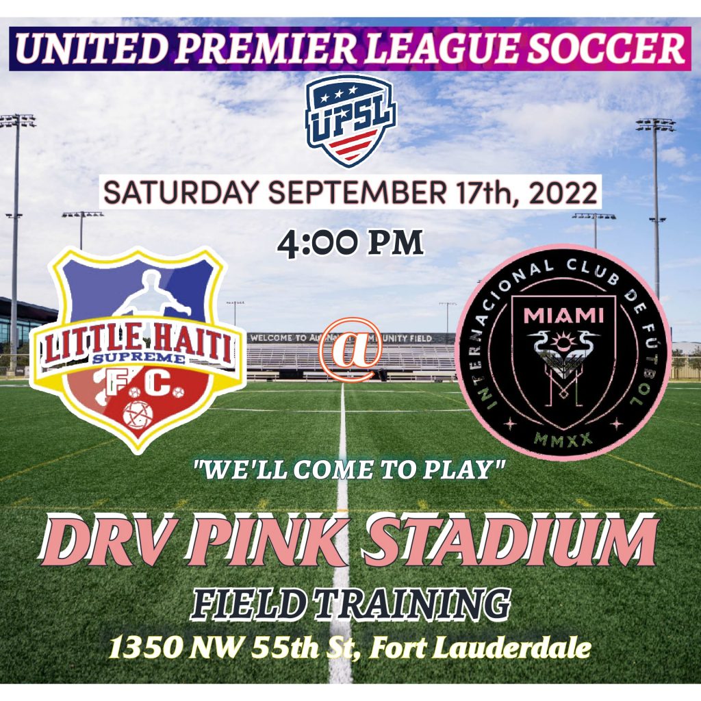 LITTLE HAITI, THE TEAM TO BEAT IN THE MOMENT AFTER THE DIVISION1 RECOGNATION, WILL FACE MIAMI INTER AT DRV PINK STADIUM/FIELD TRAINING CENTER