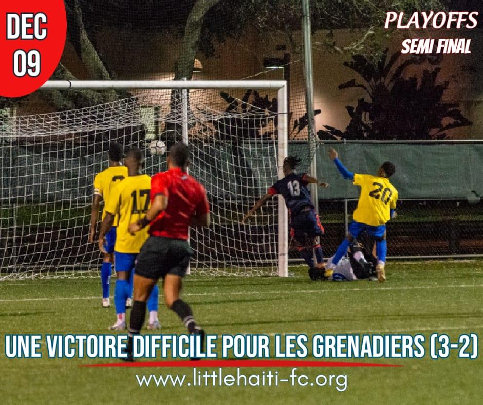 Miami, Fl.- Dans un match très difficile où le suspens s’installe jusqu’à la dernière minute, les grenadiers ont fini par gagner le pari face à Plantation FC (3-2). Deux équipes assoiffées de victoires s’engagent dans une lutte sans merci pour une place en finale de cette édition UPSL automne 2023. Ce sont les grenadiers qui […]